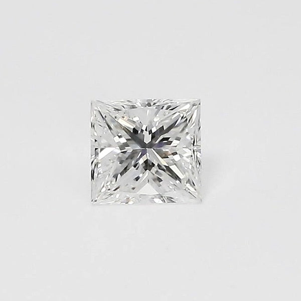 This 0.49 Carat Princess Cut Diamond has a color grade of D, with a clarity grade of VS2. There is no fluorescence. It has a diamond grading report from GIA.