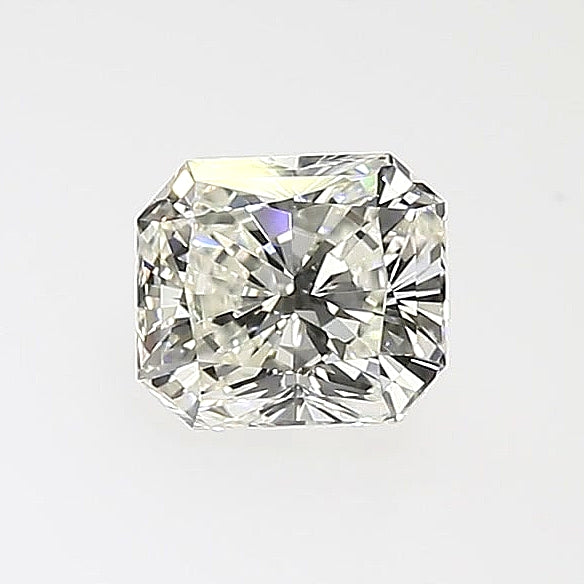 This 0.92 Carat Radiant Cut Diamond has a color grade of K, with a clarity grade of VS2. There is no fluorescence. It has a diamond grading report from GIA.