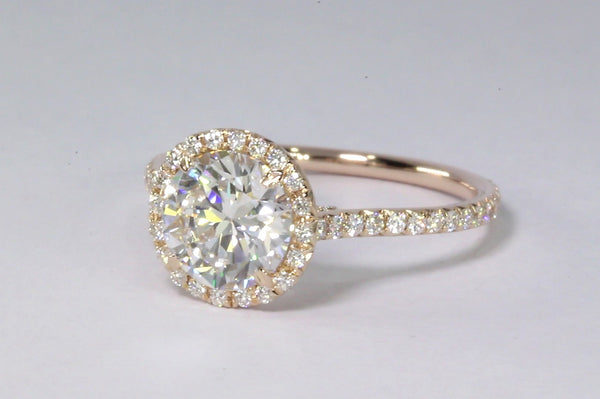 1.51 Carat E-color VS2-clarity Round Brilliant Cut Diamond Rose Gold French Micropavé Halo Engagement Ring