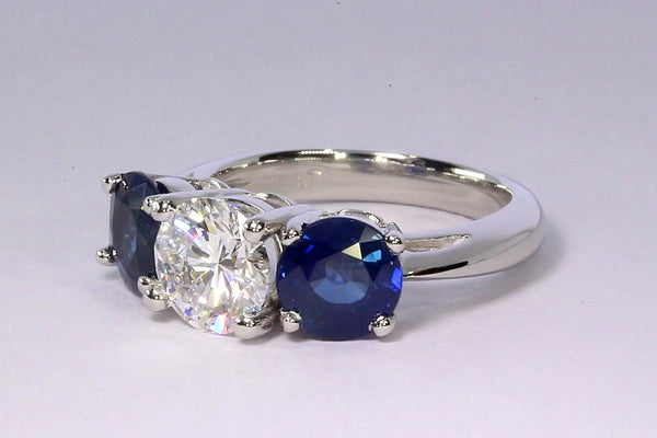1.51 Carat G-color VS1-clarity Round Brilliant Cut Diamond Platinum Three-Stone Sapphire Engagement Ring