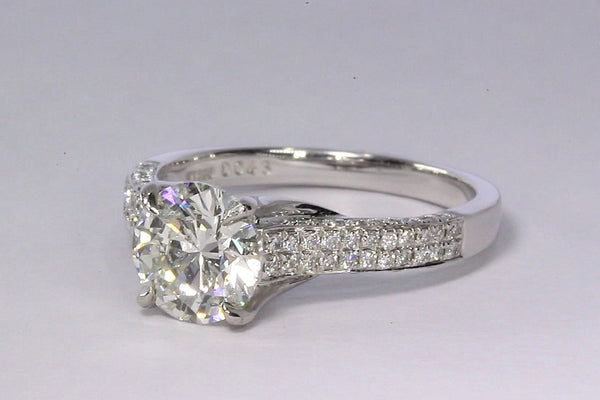 1.71 Carat H-color SI2-clarity Round Brilliant Cut Diamond Platinum Micropavé Engagement Ring