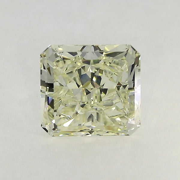 This 10.18 Carat Radiant Cut Diamond has a color grade of Fancy Light Yellow, with a clarity grade of SI2. There is no fluorescence. It has a diamond grading report from GIA.