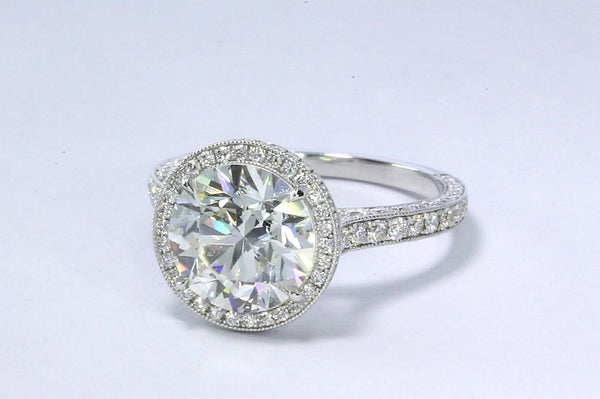 3.00 Carat K-color VS1-clarity Round Brilliant Cut Diamond Platinum Micropavé Halo Engagement Ring