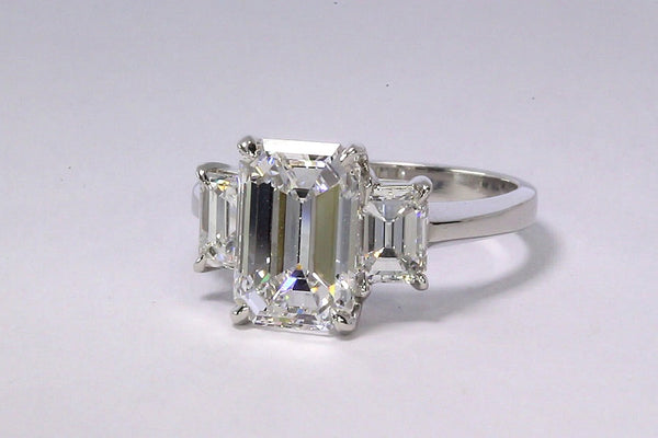 3.01 Carat D-color VS1-clarity Emerald Cut Diamond Platinum Three-Stone Engagement Ring