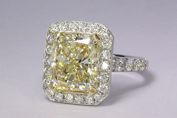5.85 Carat Fancy Light Yellow VS2-clarity Radiant Cut Diamond Two-Tone French Micropavé Halo Engagement Ring