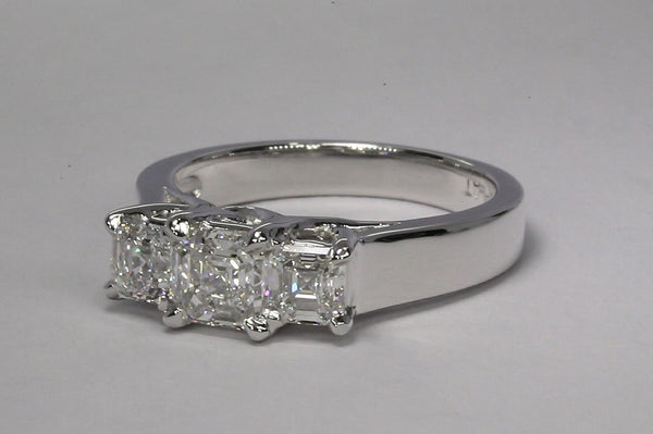.79 Carat G-color VS1-clarity Asscher Cut Diamond Platinum Three-Stone Engagement Ring