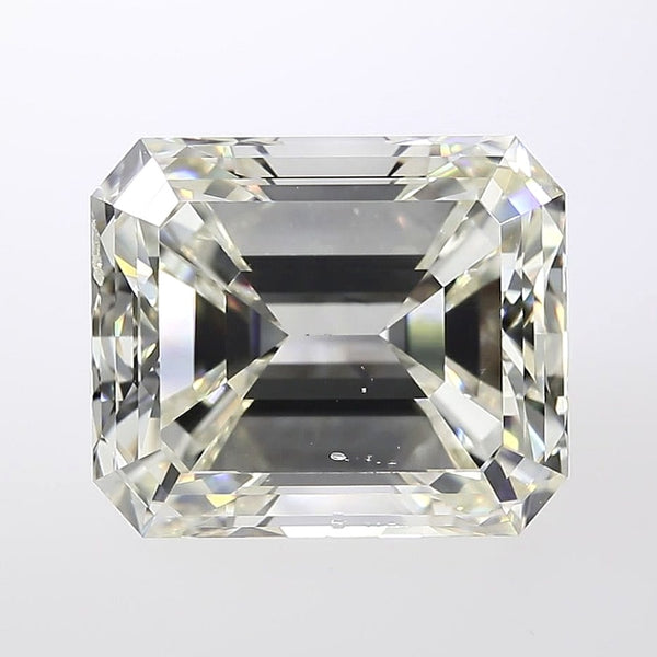This 9.12 Carat Emerald Cut Diamond has a color grade of M, with a clarity grade of SI1. There is no fluorescence.