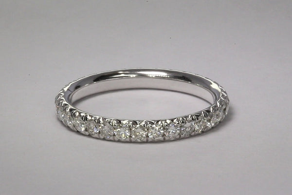 Eternity ring featuring 32 G-color, SI1-clarity round brilliant cut diamonds French Pavé set totaling 0.82ctw. *Ring size will determine the exact diamond count and carat weight (size 6 shown).