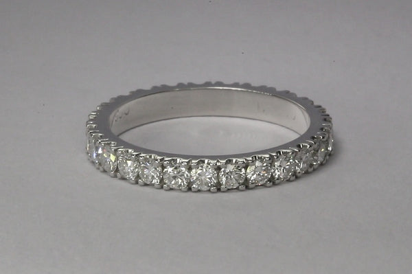 Micropavé set eternity ring featuring 27 G-color, VS1-clarity round brilliant cut diamonds totaling 1.20ctw. *Ring size will determine the exact diamond count and carat weight (size 5.75 shown).