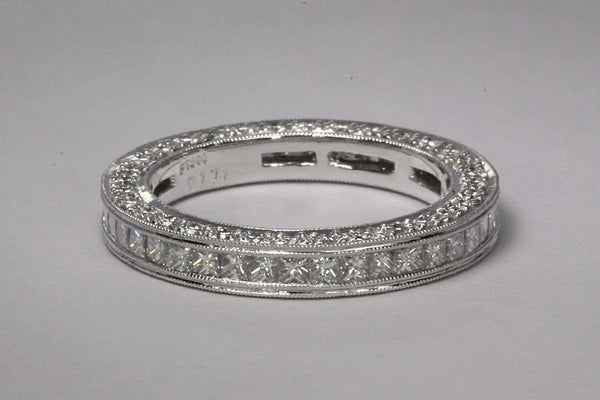 3-sided Princess & Round Brilliant Cut Channel Set Milgrain Diamond Eternity Band (F Color / VS Clarity / 1.71 CTW*)